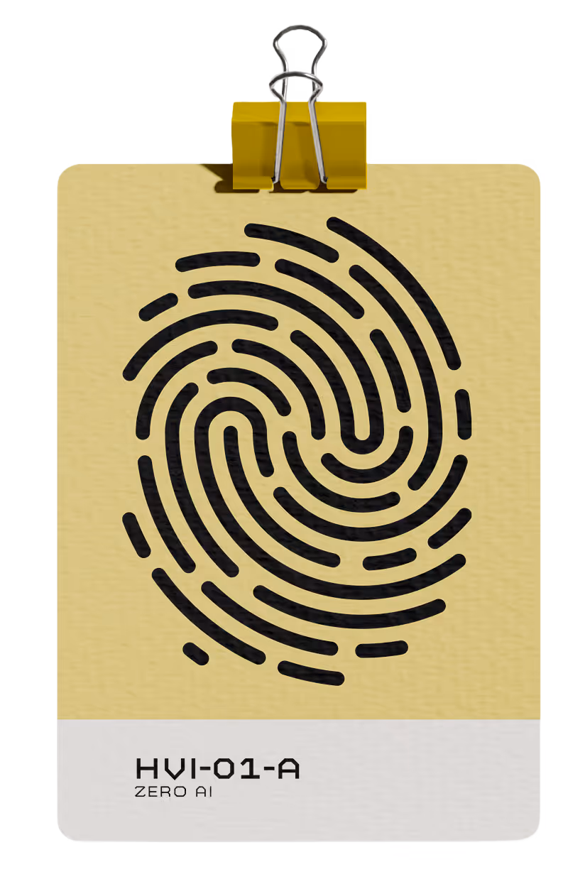 Every HVI project is awarded the Foundations Origin Mark. It’s more than a badge; it’s a promise to your customers that your brand’s creative core is human-vetted and ethically built.